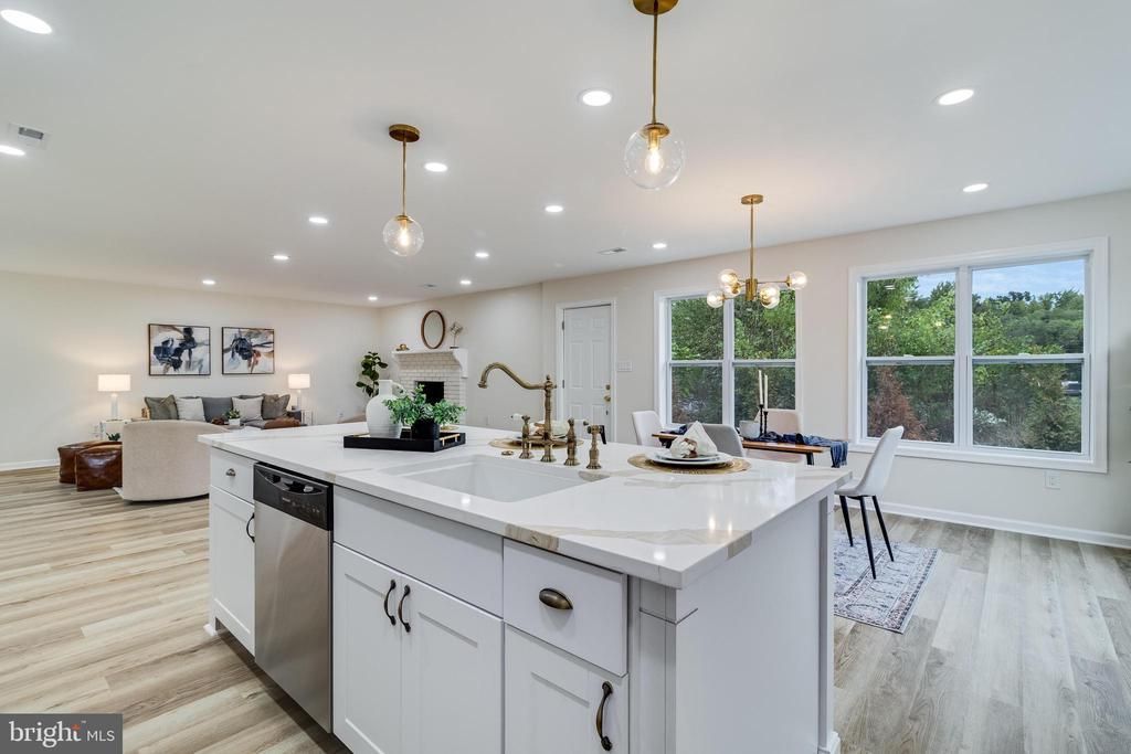 Style, substance, and space—all perfectly packaged in this head-to-toe renovated rambler...From the moment you arrive, the bold black-and-white exterior, manicured landscaping, and welcoming front porch set a confident and modern tone... Inside, the open-concept layout stuns with wide-plank luxury vinyl floors, crisp neutral paint, recessed lighting, and a seamless blend of form and function....The heart of the home is the designer kitchen—showcasing gleaming white cabinetry, quartz countertops with a dramatic waterfall edge, a large center island with bar seating, and a full suite of stainless steel appliances...Gold hardware and custom lighting add just the right amount of glam... The spacious living and dining areas flow effortlessly, framed by large windows and natural light... the private owner’s suite offers a serene retreat with generous closet space and a spa-like ensuite bath, featuring a custom walk-in shower with stone inlay and designer tile.... Three additional bedrooms share a beautifully updated second full bathroom with coordinating finishes... Outside, enjoy a large, level backyard perfect for entertaining, relaxing, or creating your dream outdoor space... Detached garage offers ample room for parking, storage, a workshop—or even a future studio... Everything in this home has been upgraded for modern living: new HVAC, new roof, updated plumbing and electrical, and premium finishes throughout... Located just minutes from shopping, restaurants, schools, and major commuter routes—this turn-key gem combines thoughtful design with everyday convenience...Don't miss out on your chance to own this stunner...Scheduled your showing today.
